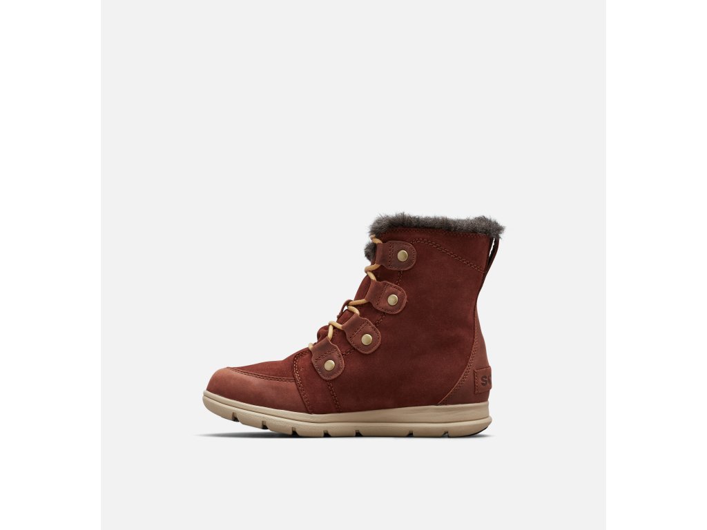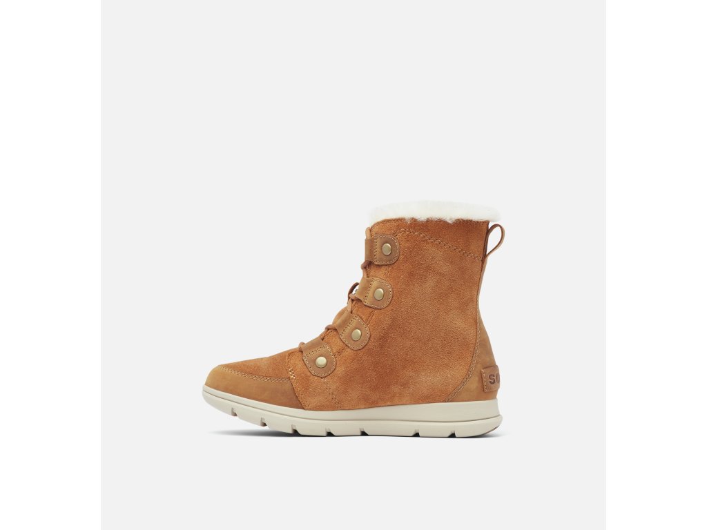 Buďte pripravená objavovať novú pôdu pod nohami - športovej obuvi Sorel Explorer Joan™ to bude pohoda! Priedušný, vodeodolný zvršok z kože a semiša udržuje nohy v suchu, zatiaľ čo podšívka z mikrovlákna a 100 g tepelná izolácia hreje a poskytuje útulný komfort. Táto obuv vzbudí vašu driemajúcu dobrodružnú povahu.
