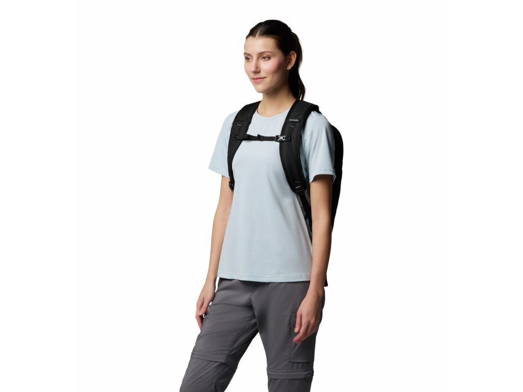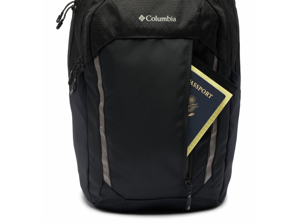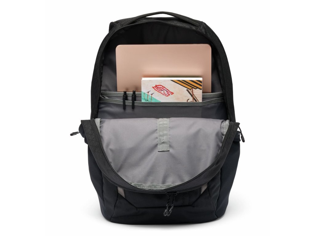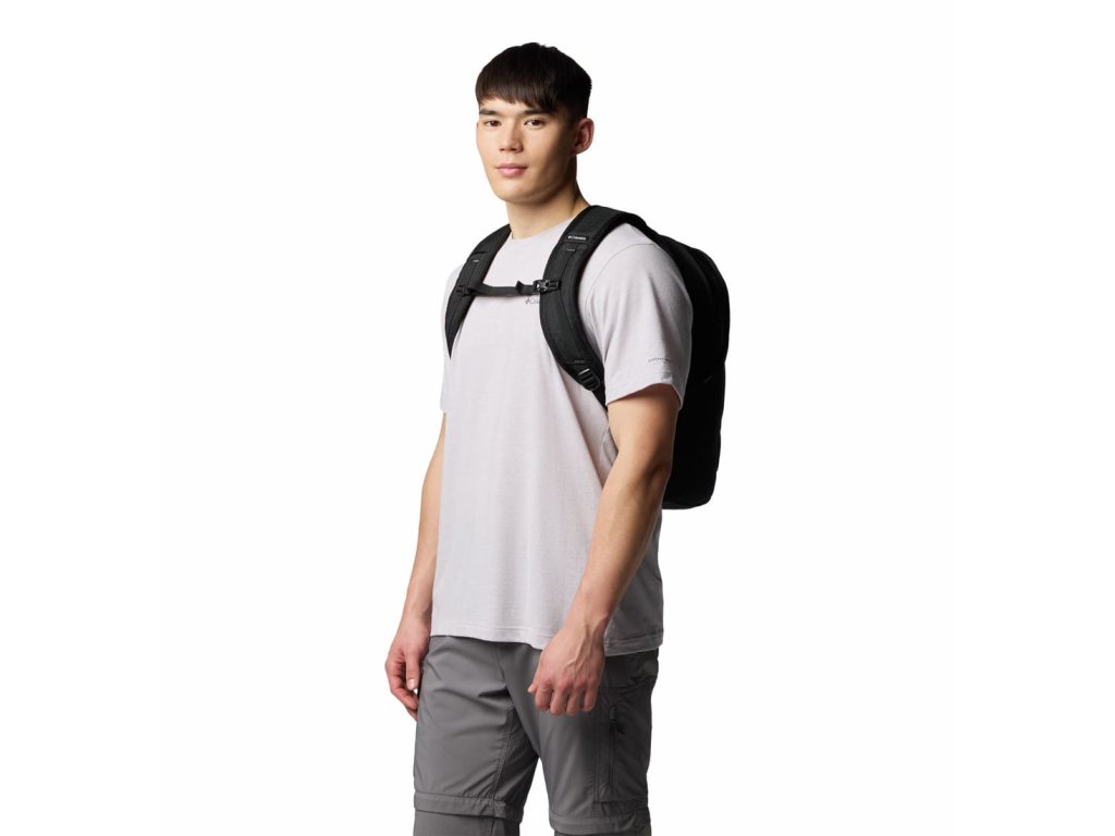 Funkcie zahŕňajú dva hlavné úložné priestory, organizér na predné vrecká, samostatné vrecká na notebook a tablet, nastaviteľné hrudné a ramenné popruhy a dve vrecká na fľaše s vodou.