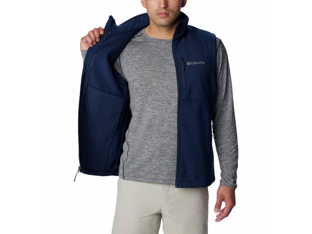 Táto pánska softshellová vesta Columbia Ascender™ vás ochráni pred vetrom a vlhkosťou. Vesta má pohodlný strih, nastaviteľný lem a manžety. Do mnohých vreciek si uložíte všetky potrebné veci.