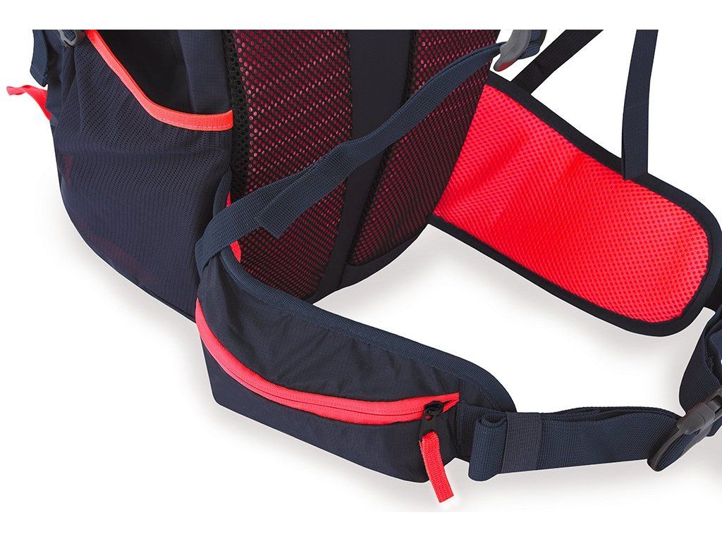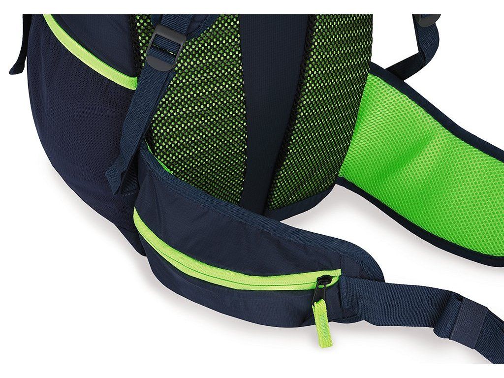 - Anatomicky tvarovaný chrbát: Spolu s nastaviteľnými ramennými popruhmi, bedrovým pásom a prsnou spojkou zaisťuje dokonalé prispôsobenie postave.