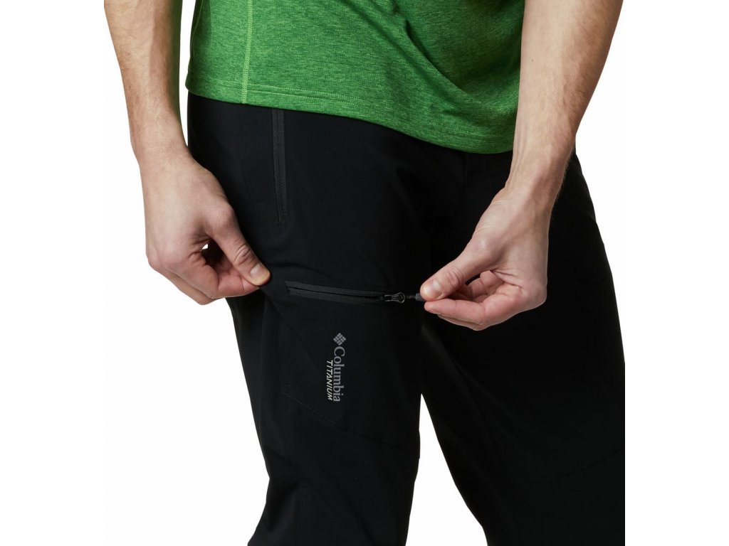 Hľadáte nohavice na vaše ďalšie turistické výpravy? Práve ste ich našli! Tieto elastické softshell nohavice Columbia Titanium sú vyrobené z recyklovaného polyesteru a elasthanu. Materiál je vode odolný vďaka technológii Omni-Shield™, ktorá dlhodobo odpudzuje vodu a chráni pred škodlivým UV žiarením vďaka špeciálnej úprave Omni - Shade™. Štvorsmerný streč vám dá absolútnu voľnosť pohybu. Drobnosti uložíte do cargo vreciek s bezpečnostným zipsom alebo do bočných vreciek na zips.