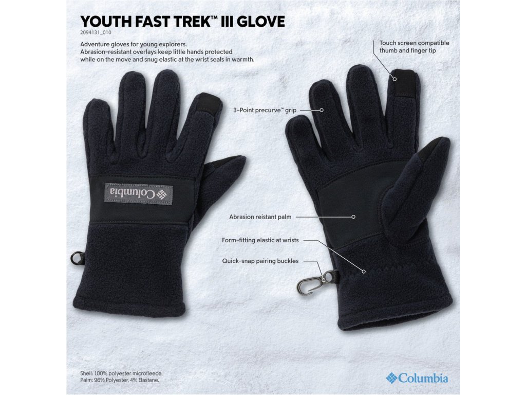 - Spoľahlivá izolácia: Kvalitný flísový materiál Fast Trek™ efektívne udržuje teplo a chráni detské ruky pred mrazom.